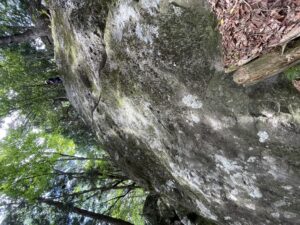 ほぼ持てる所が無さそうな岩です。Fさんより、足先でしっかり体重を乗せて、ゆっくり足を上げていく。そしたら滑らないとのアドバイスを頂き早速チャレンジです。