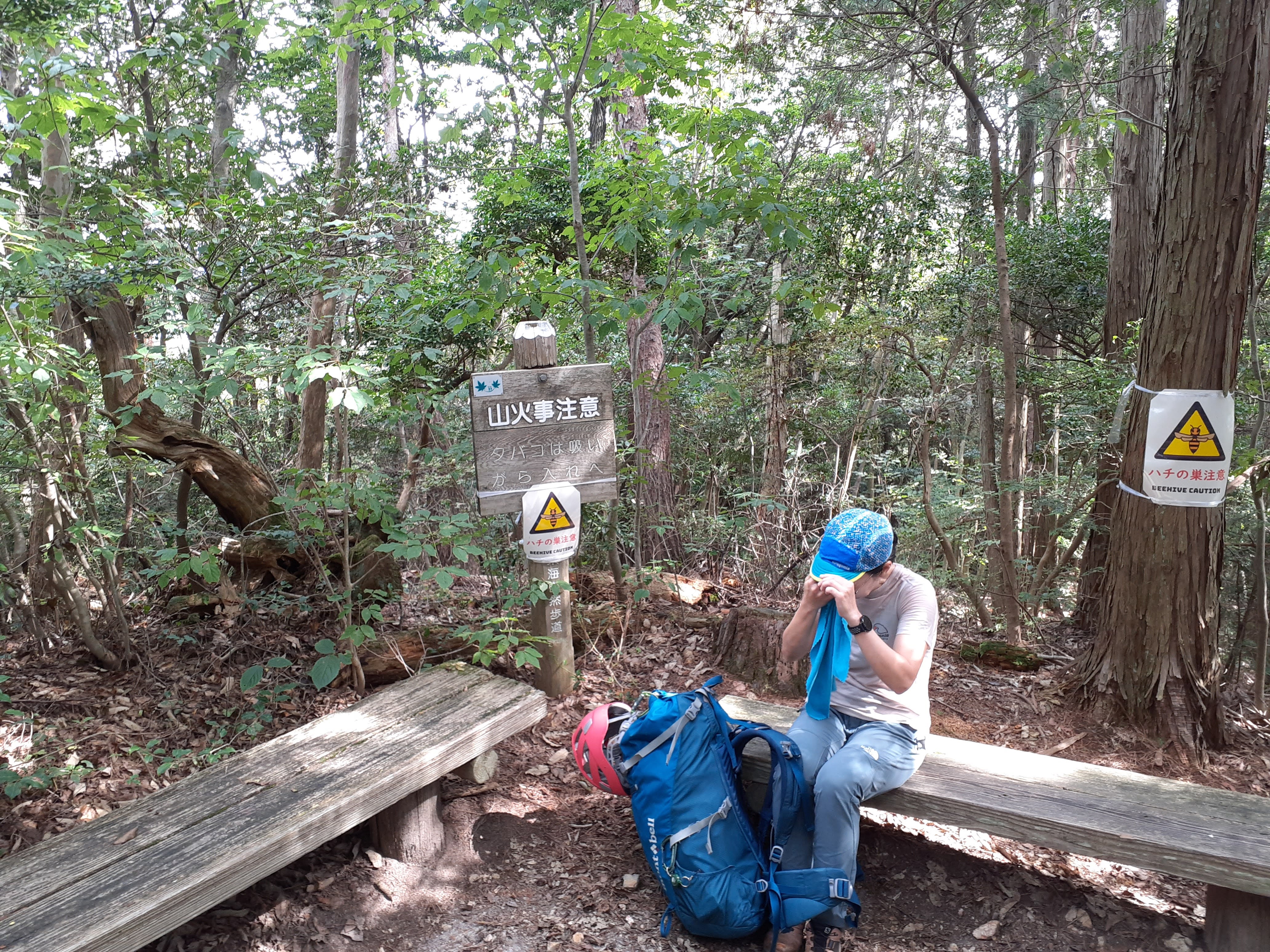 今日は歩きなれた春日井三山。いつもは弥勒山や内津峠まで行っていましたが、今日はまだ自信がないので、道樹山まで。9月終わりだというのに、蒸し暑くボッカしているKさんは汗がとまらないようです。