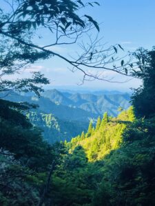 滝を登りきって後ろを振り返ると、ひらけて綺麗な景色が見えました!