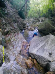 小滝の所まで少し沢を下って、いい場所に到着。新しいロープワークを教えて頂ける事に‼