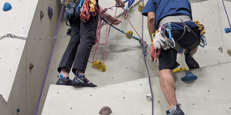 午後からは山岳壁でリード&フォローとツルベでの登りを練習。