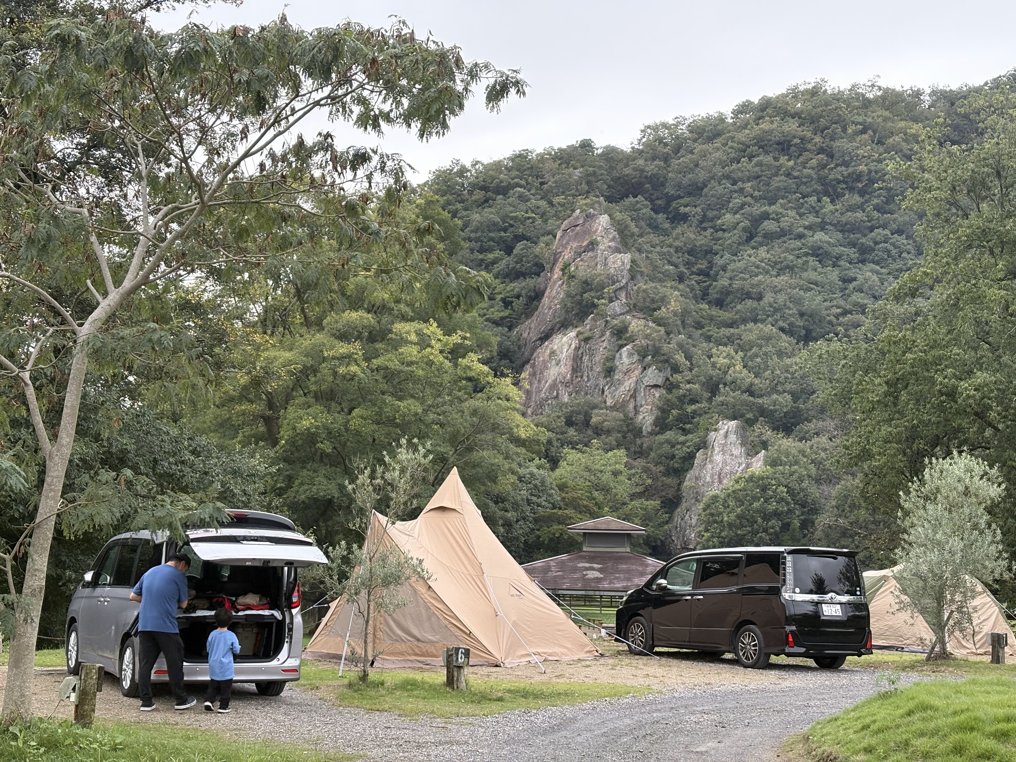 今回のBBQ&テント泊のキャンプ場は、すぐ近くの伊木山フォレスト。オシャレで綺麗なキャンプサイトでした