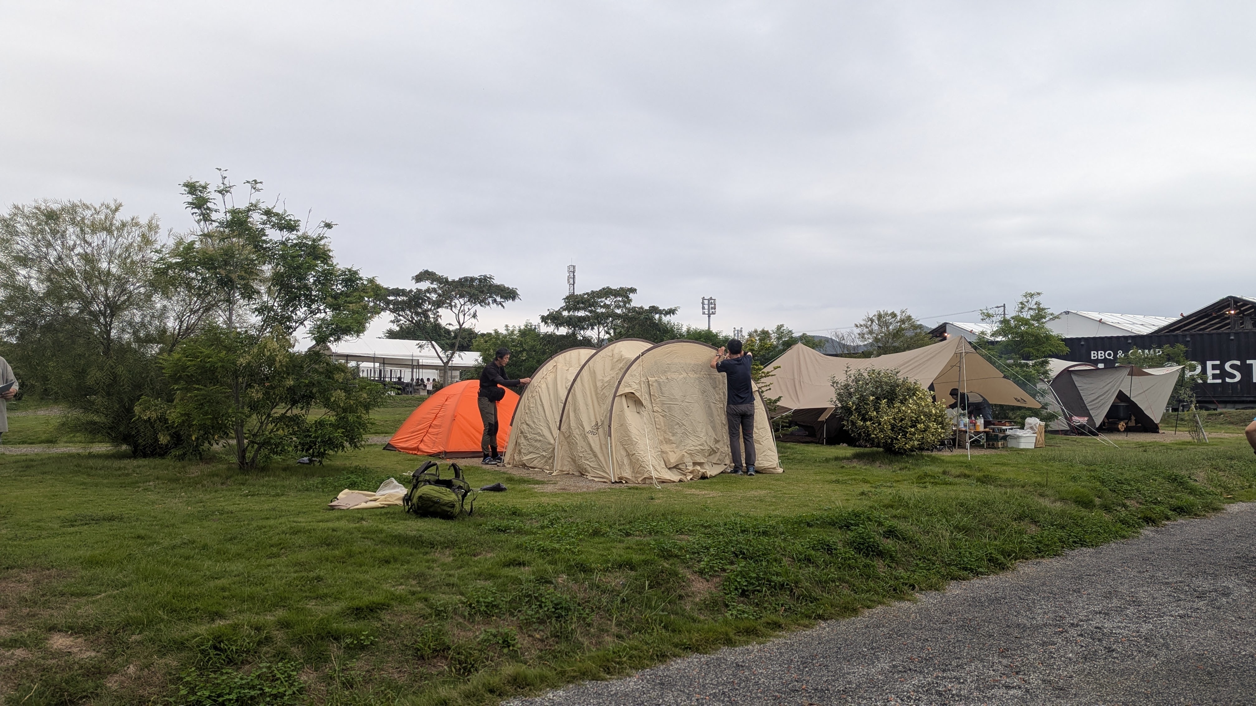 寝る場所のテントも皆様、手際よく組み立てていきます。