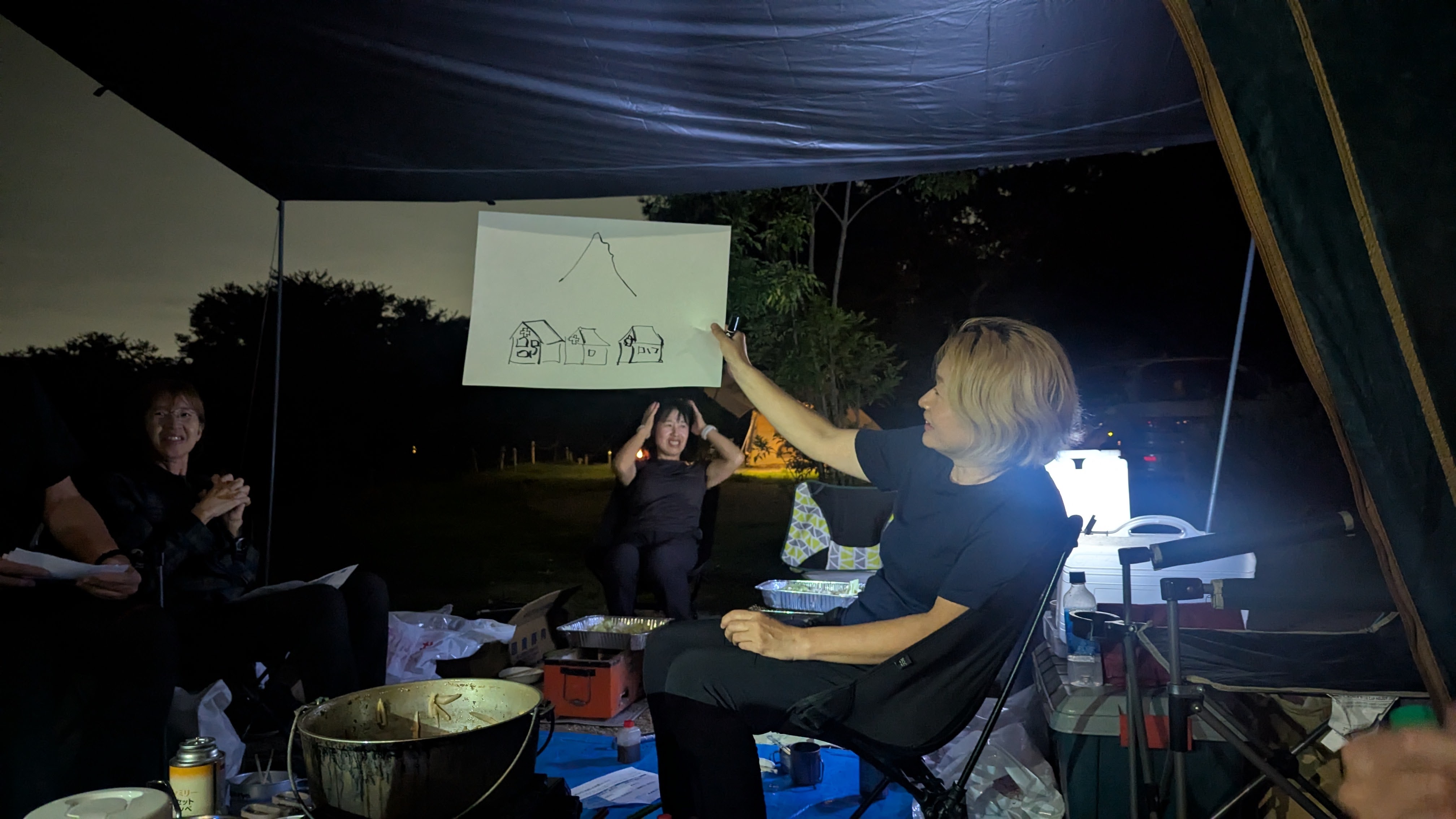 Tさんがとっておきの、お楽しみを準備してくれていました。2チームに分かれてチーム戦!勝ったチームのメンバーには景品あるという事で気合いも入ります‼