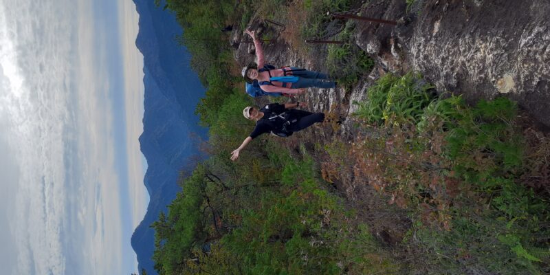 駐車場から3時間半で宇連山頂に着きました。山頂は木が生い茂り、展望はありません。ちょうど正午ということで昼ごはんをたべてまったり。標高は1,000m近くあるせいか空気は冷たく、上着を着ました。