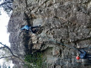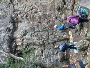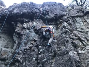 4名が揃った後、リードやトップロープにて大中小のハングルートでクライミングを楽しんだ。