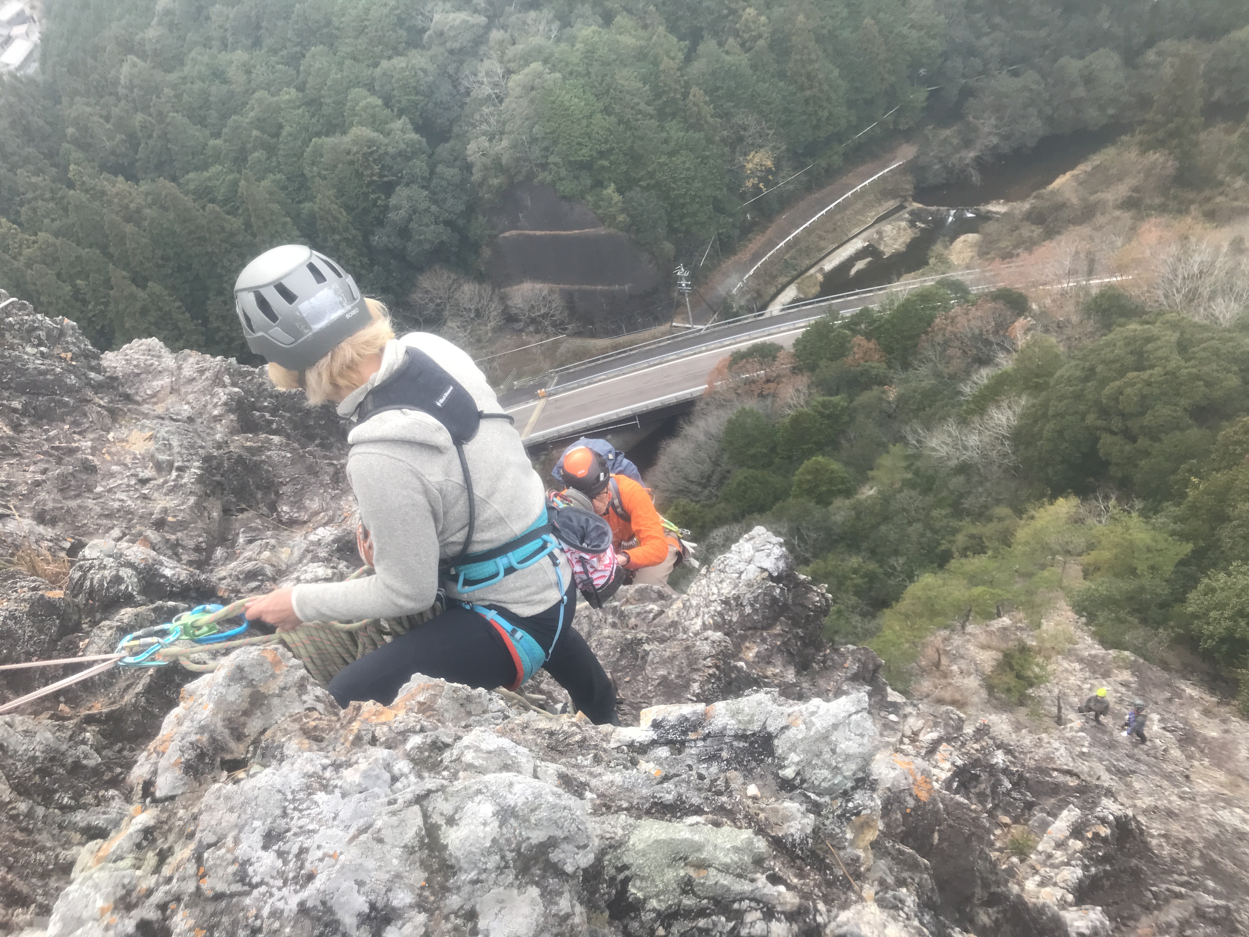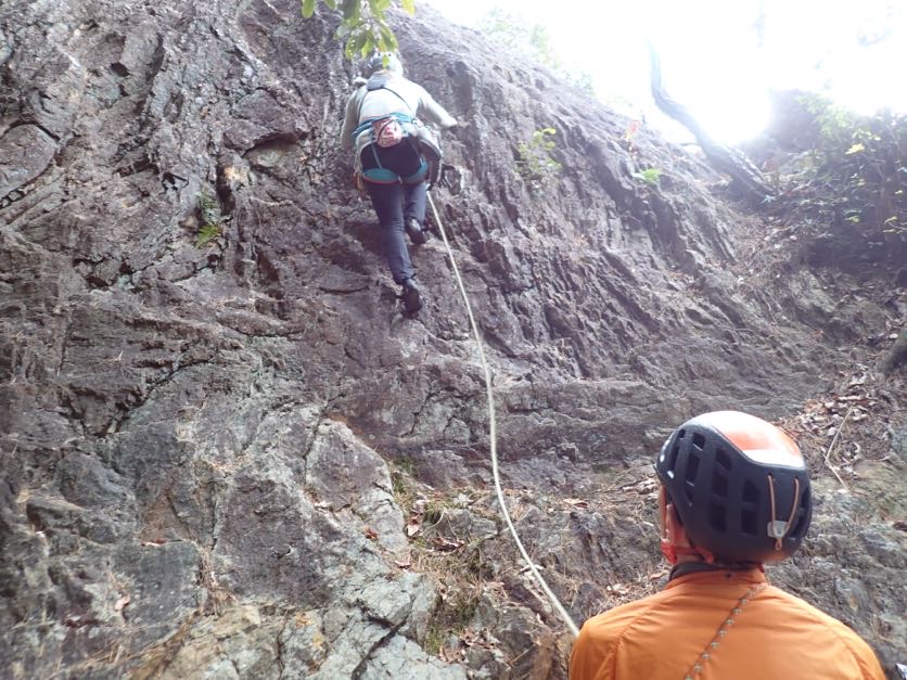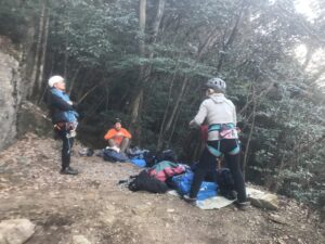 今回はHさん&Mさん、Sさんと私のペアでシングルロープで登ることにしました。
