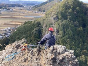 ヒイヒイ言いながら何とか終了点まで着いてトップロープ用の支点を構築。