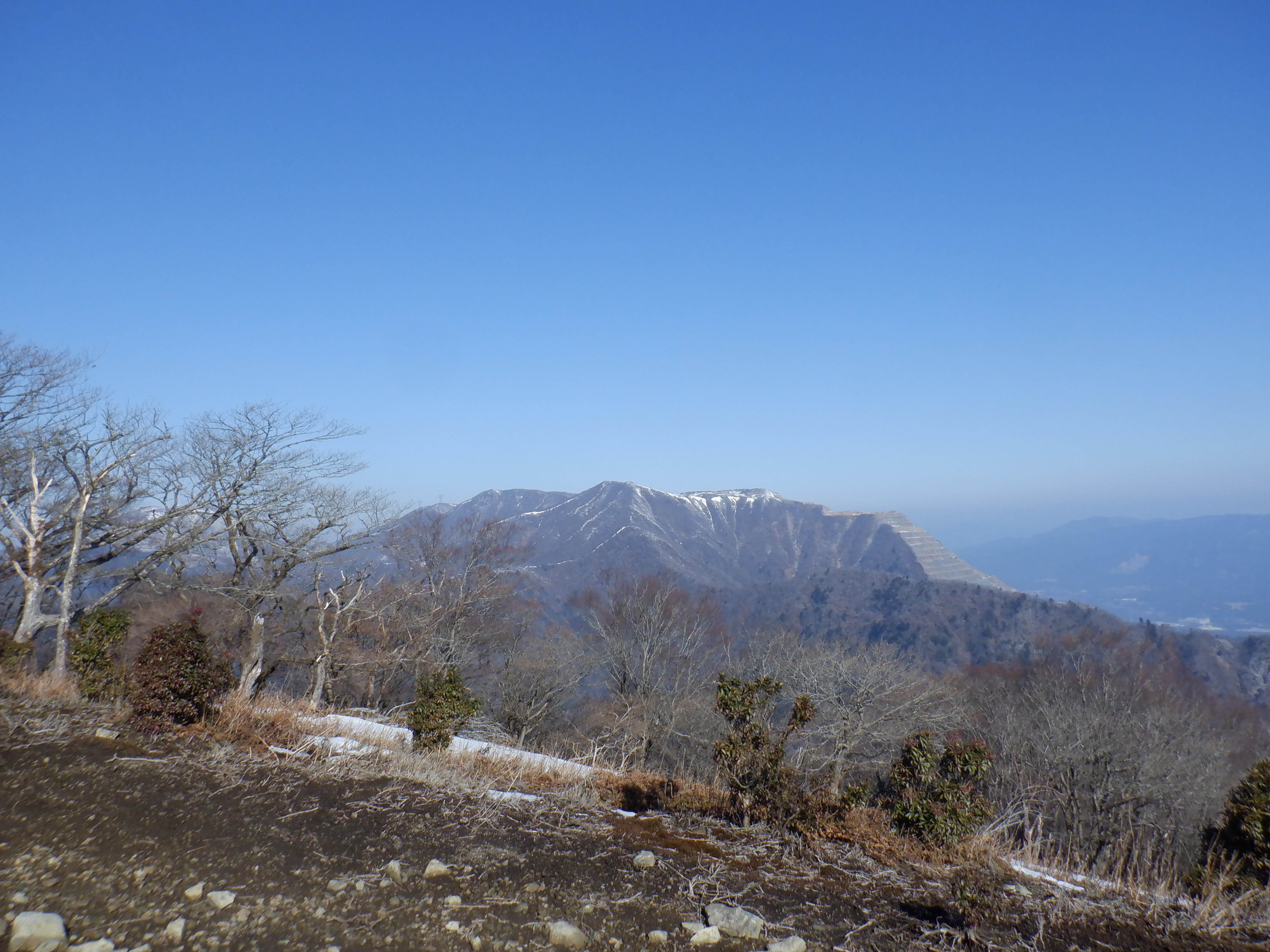 藤原岳方面。黒く見えますが、登山道には雪はありそうです。
