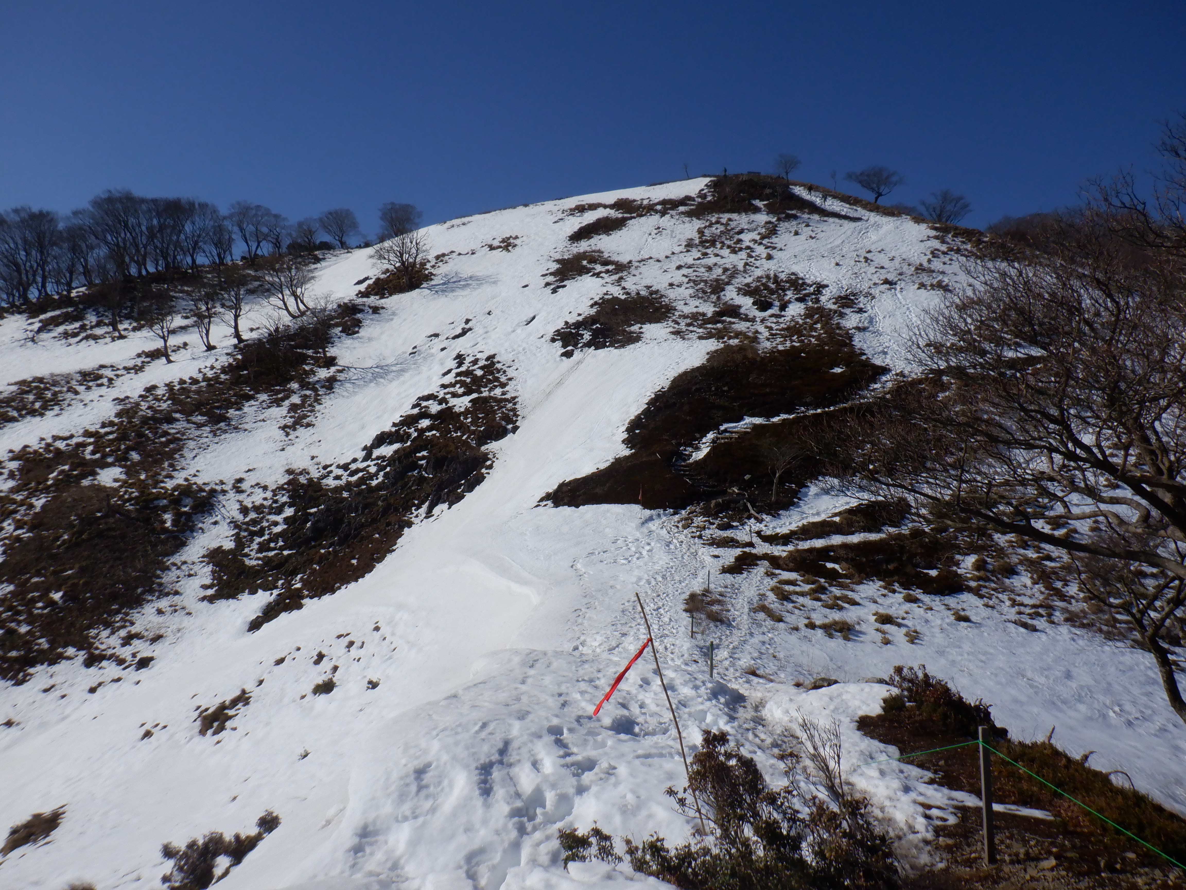 とはいえ、下から見上げても雪は少なそう。