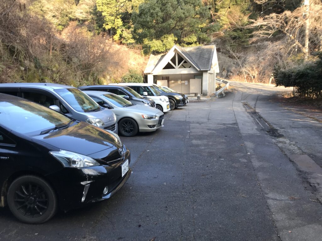 8時前にゲート前に着くと、駐車場はいっぱい。蒼滝駐車場に駐車して裏道登山口に向かいます。