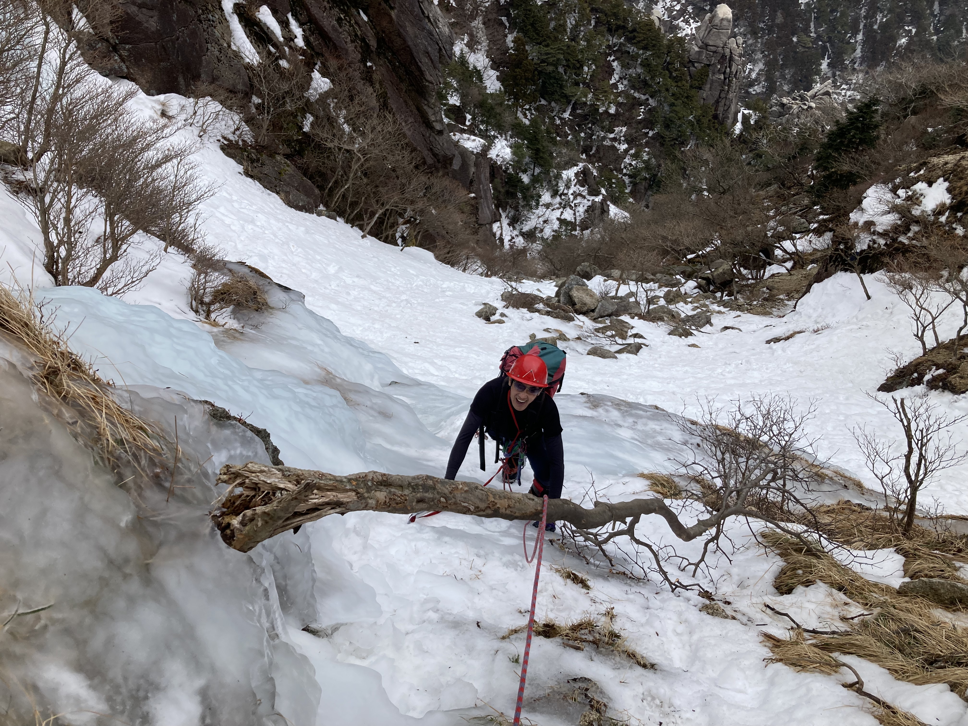 私たち以外人が居なかったので、積極的にロープを出して確保の練習をしながら登ります