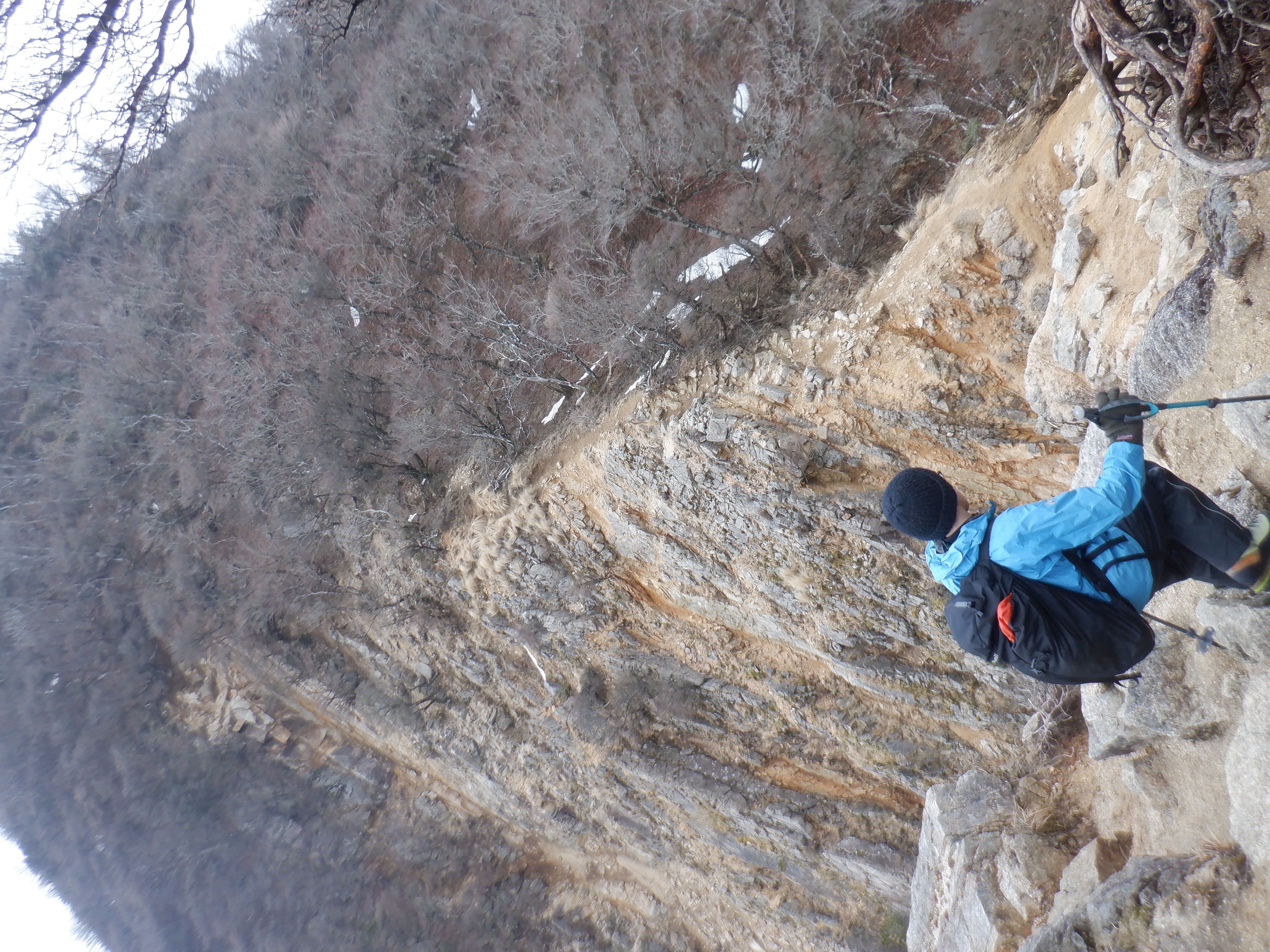 山は、ここのところの暖かさのせいか、南面にはほとんど雪はない。みなさん入道ヶ岳に福寿草に会いに行っているのか、釈迦ヶ岳の方は登山者がとても少なく、静かに歩けた。
