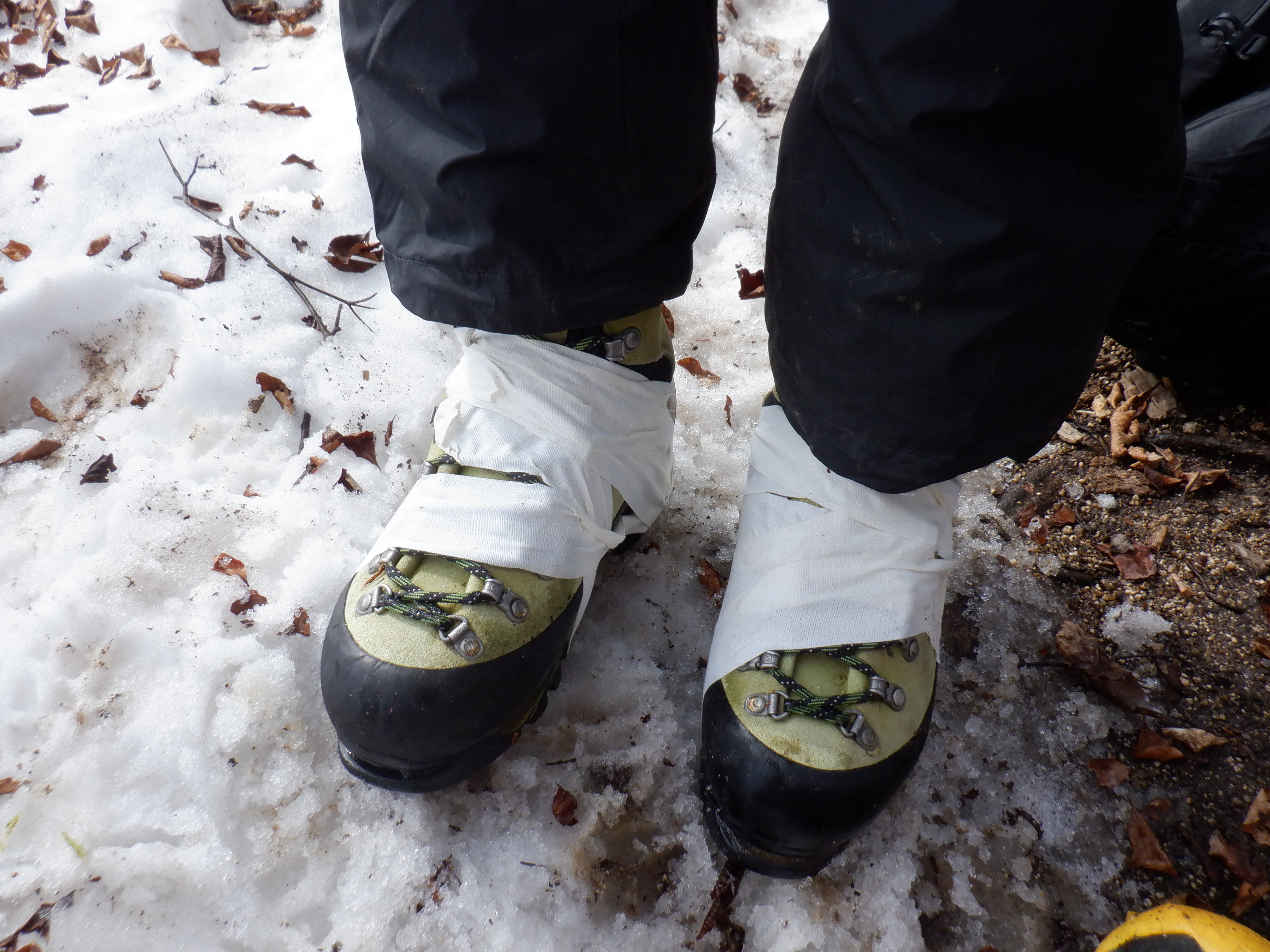 釈迦ヶ岳に着いた。ここでソールが分離しないようにテーピング。