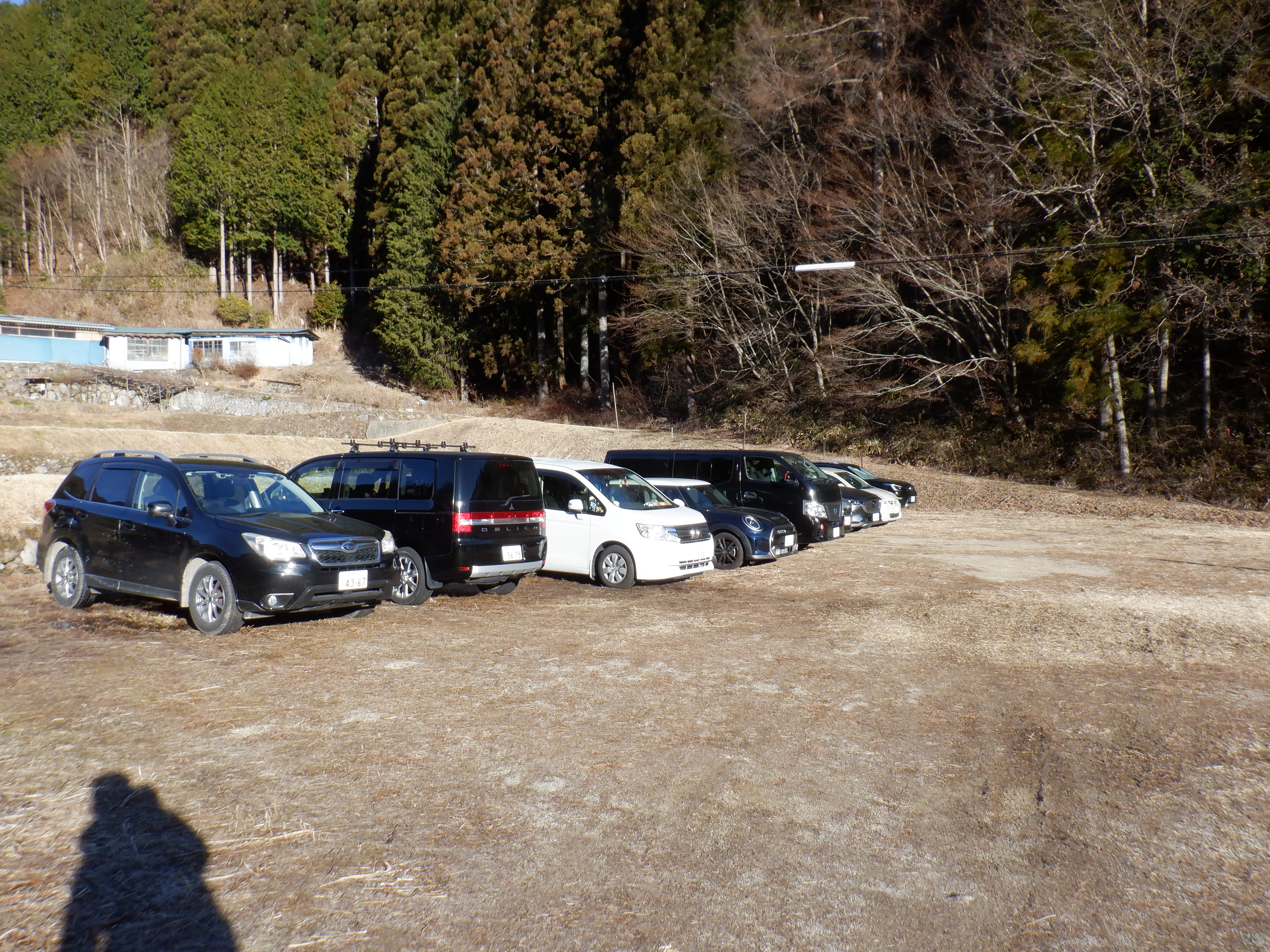 7時過ぎに冬季の臨時駐車場に着くと、あと2,3台くらいのスペースしかない。しかも湘南、八王子、姫路といった遠方ナンバーの車がたくさん停まっている。恵那山、いつからこんな全国区になったのか。