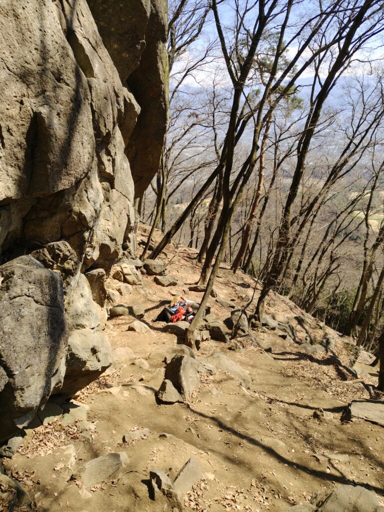 翌日は、あまり長くおれないので、春日居砦というエリアに行きました。昨日と違った道で行きましたが、落ち葉で踏み跡が隠れて、岩にたどり着くまで苦労した。