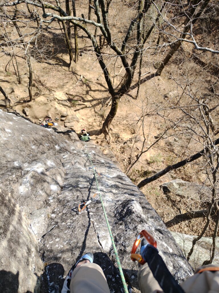 誰もいない静かな岩場で自分のペースで登る。落葉した木立から陽があたり、寒くもなく、暑くもない。なんて贅沢なんだろう、永遠にこんな時間が続いてほしい…と思います。