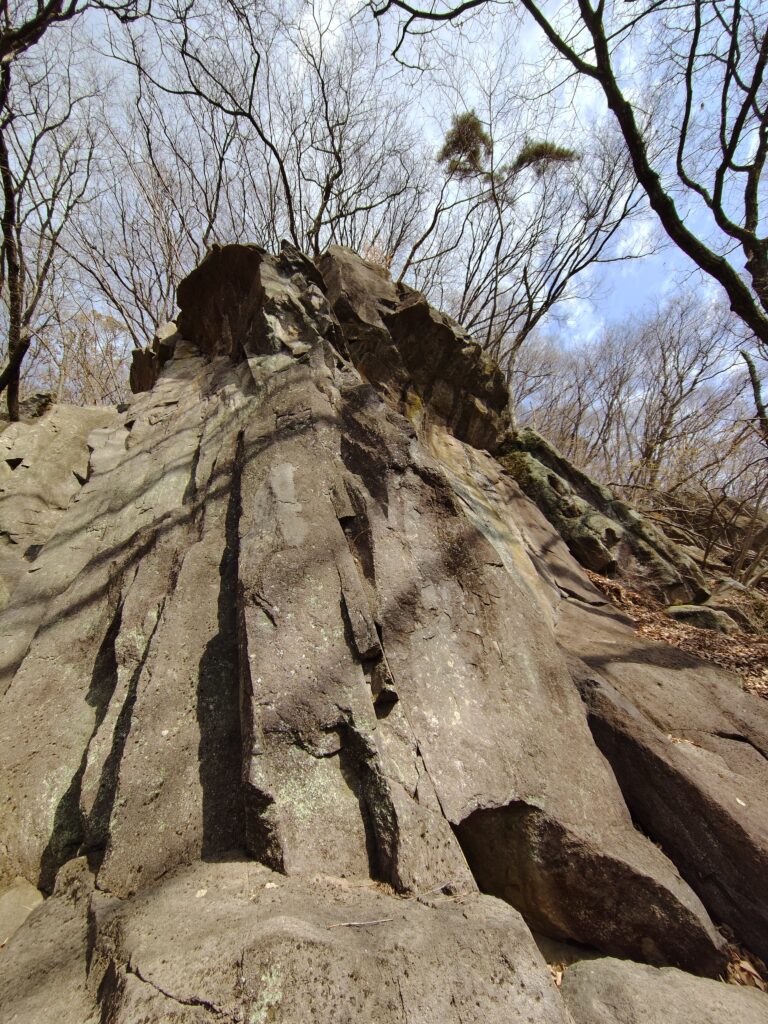 岩質は、火山性の安山岩。表面がざらざらしていてフリクションがいい。あまりかぶったところは少ないですが、節理が発達していて、トラッドルートも豊富です。