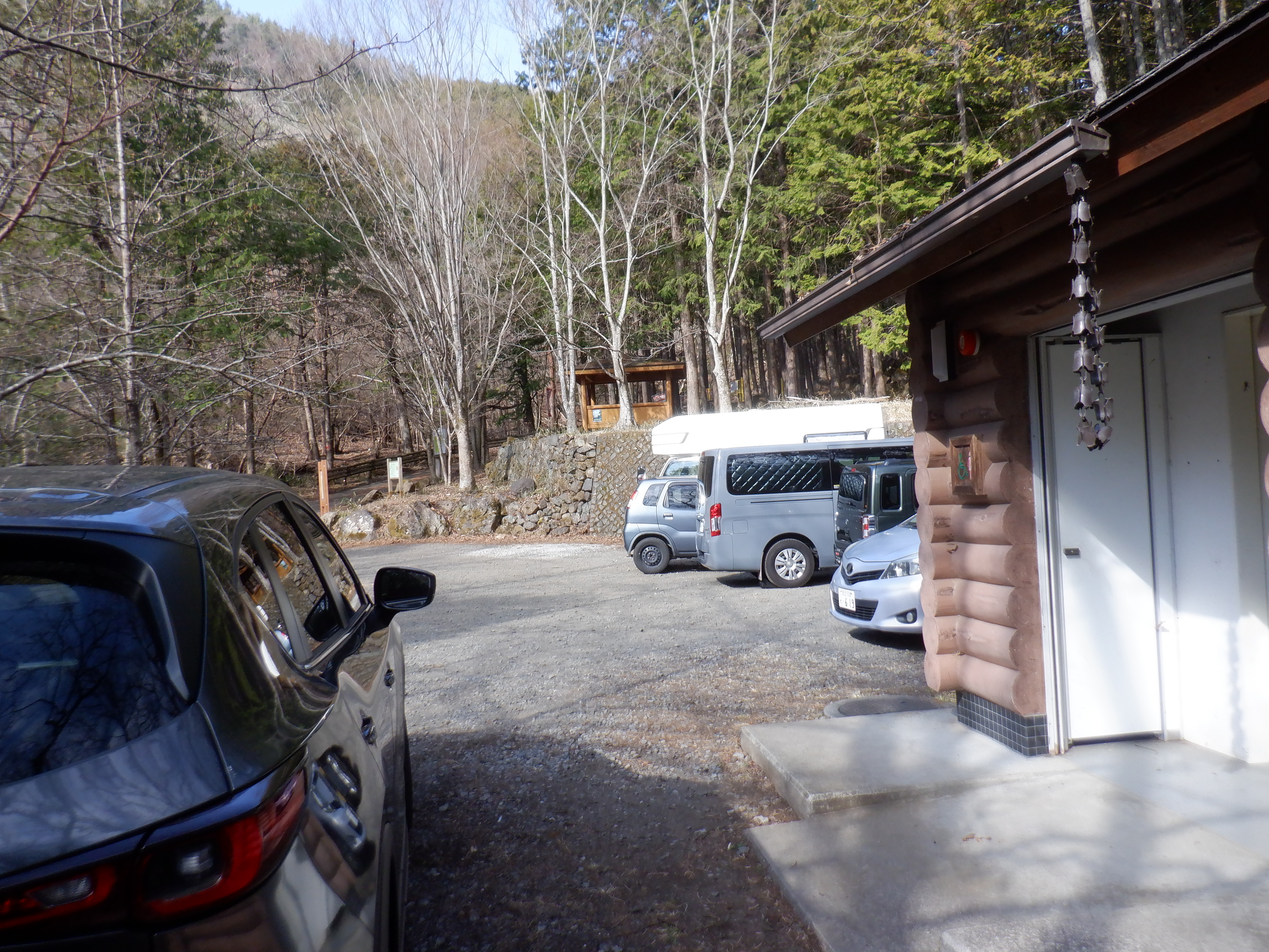 気を取り直して駐車場に向かいます。平日だから誰もいないだろうと思いきや、ロープを持った人がたくさん。スペースが狭い駐車場はほぼ満車。おそるべし兜山。