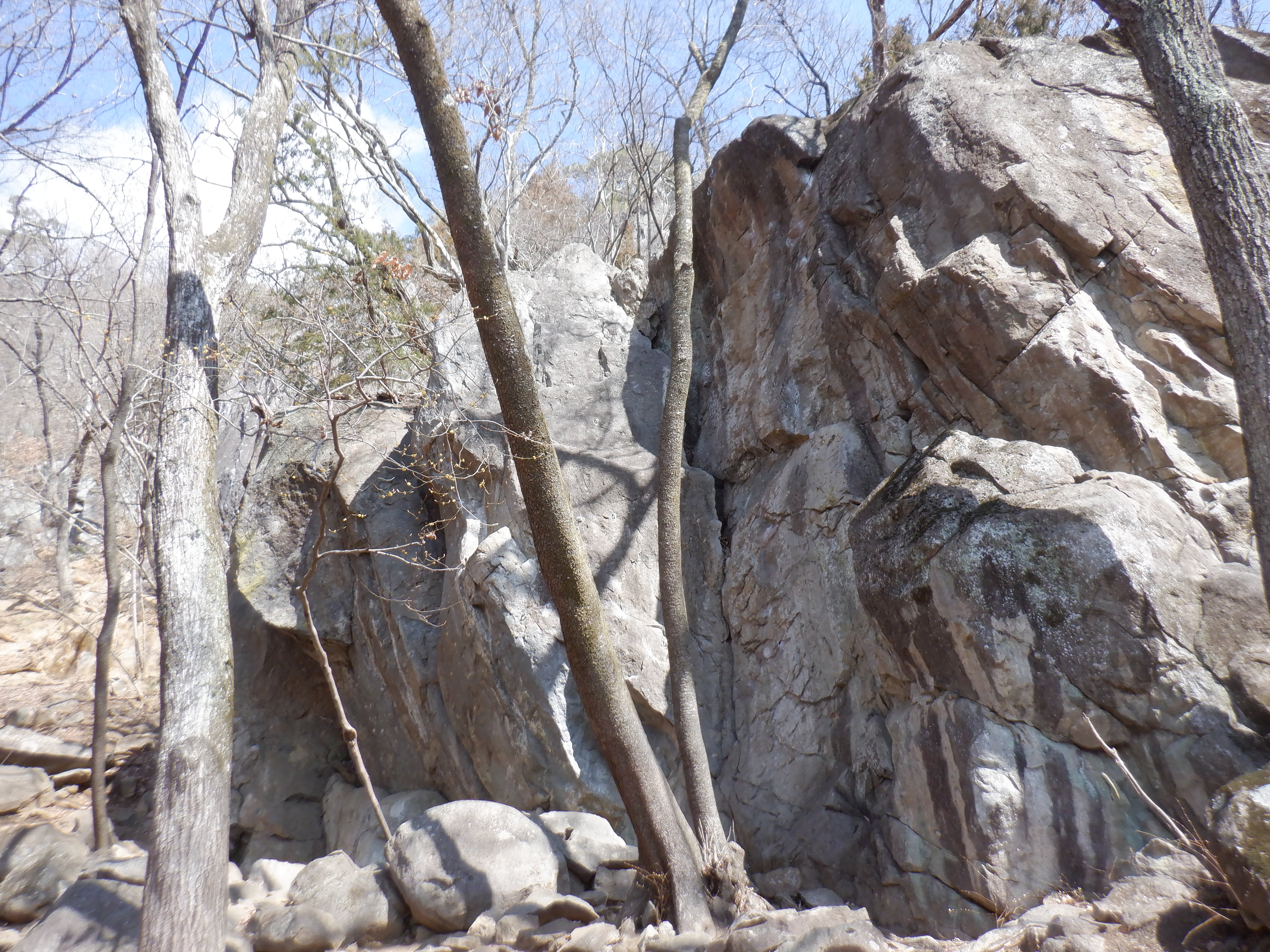 ここは、以前から冬場も登れる岩場として知られていましたが、クライマーの不注意で山火事となり、しばらく閉鎖されていたところ、地元の方の尽力でルートも開拓されエリアとして開放されたところです。