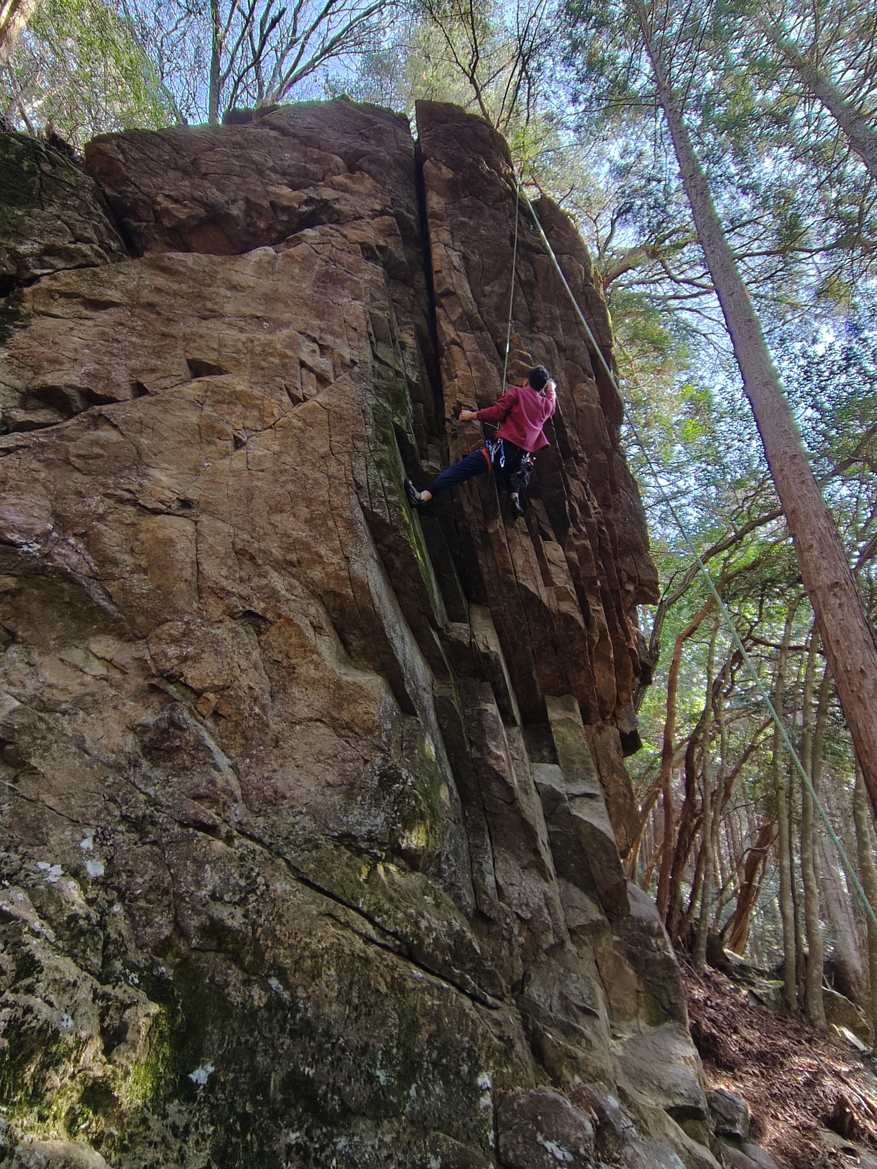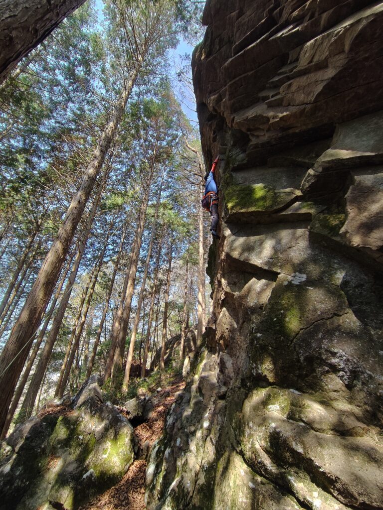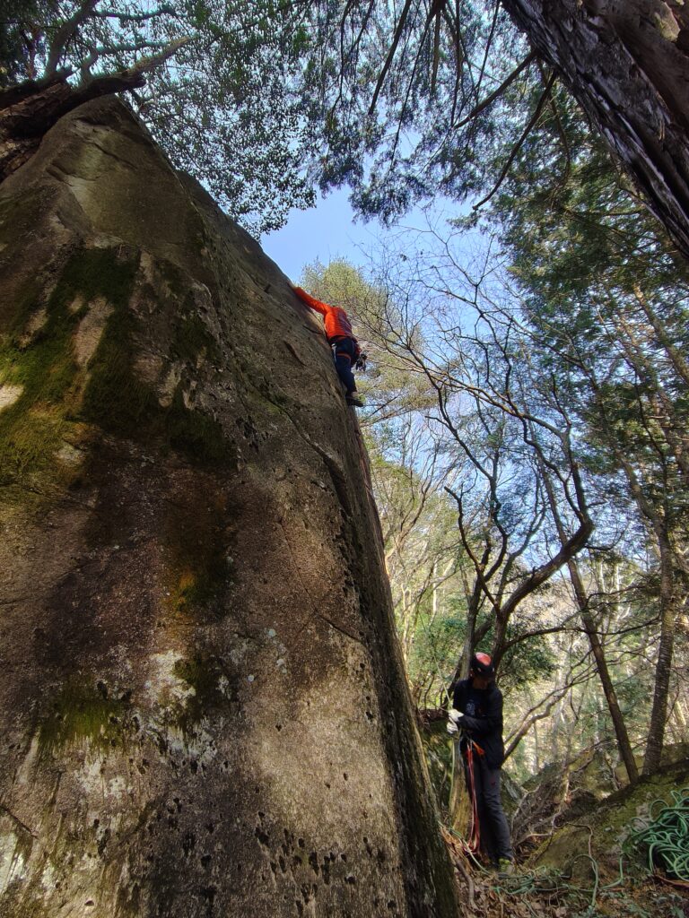 次は、ガネーシャ岩に向かい、2本ほど登る。ここもだいぶコケが発達して自然に還ろうとしていた。