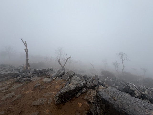 この辺りから一段とガスと強風が強まってきます。すっかりファンキーな光景にテンションがあがってきます!!