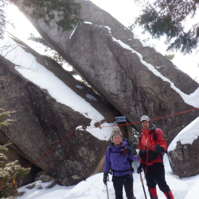 藤内沢3ルンゼを詰めて、鋸岩にやってきました。ここはいつも複数のパーティーがトップロープをはっている、アイスクライミング初心者の練習の場ですが、この日はだれもいなくてびっくり。連休で遠くに行っているからかな??